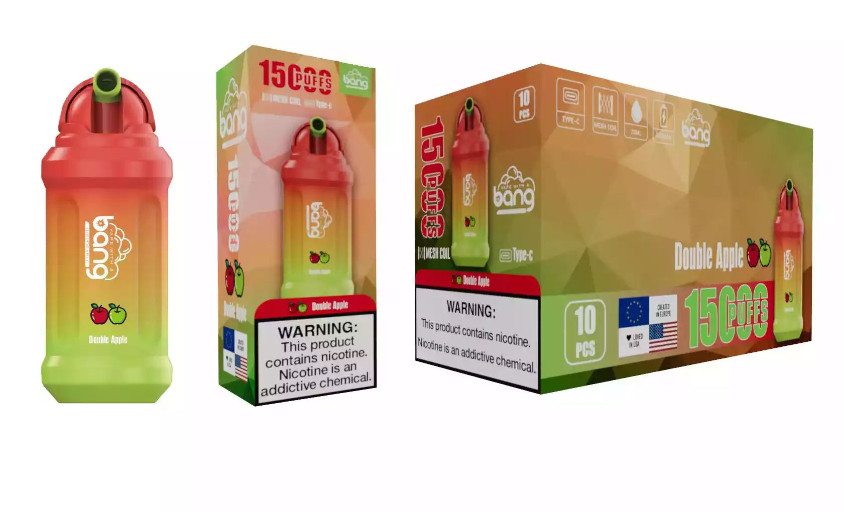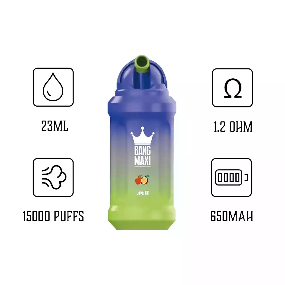 Vorgeladen mit 21 ml hochwertigem E-Liquid, bietet das Bang 15000 Puffs verschiedene Nikotinstärken: 0%, 2%, 3% und 5%, um unterschiedlichen Vorlieben gerecht zu werden. Der Widerstand von 1,2 Ohm sorgt für ein ausgewogenes Zuggefühl mit sanftem Dampf. Die Einhaltung der 1EM/ODl Qualitätsstandards garantiert eine zuverlässige und gleichbleibende Leistung.