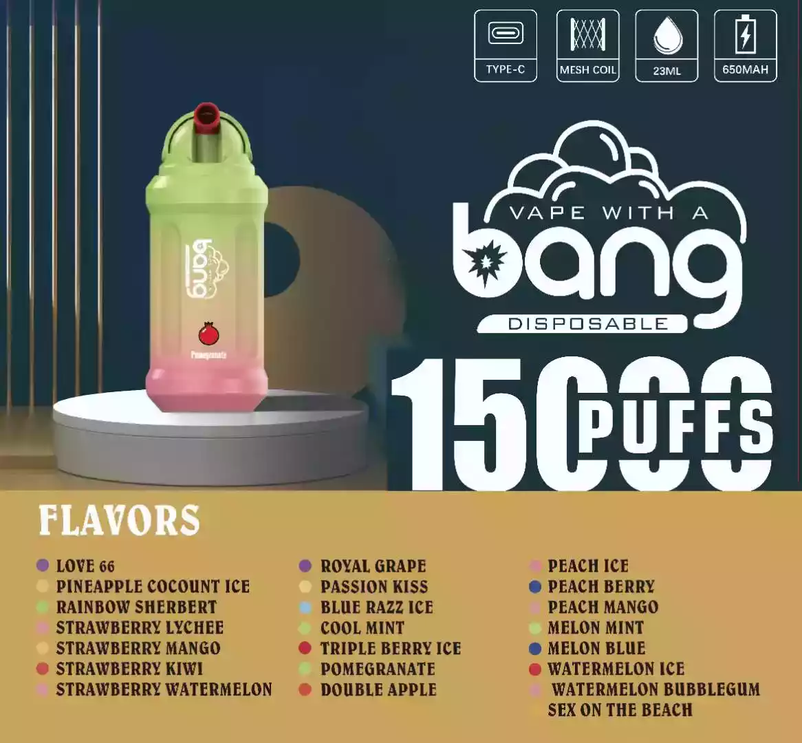 Das Bang 15000 Puffs bietet eine breite Auswahl von 22 leckeren Geschmacksrichtungen, sodass für jeden Dampfer das Richtige dabei ist: