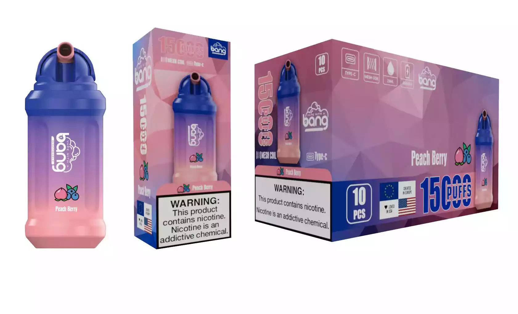 Das Bang 15000 Puffs Einweg-Vape überzeugt mit langlebiger Leistung und vielseitigen Optionen. Der großzügige Akku und die große E-Liquid-Kapazität bieten ein langanhaltendes Dampferlebnis. Dank der schnellen Type-C Ladefunktion ist das Gerät schnell wieder einsatzbereit. Ob fruchtig, frisch oder exotisch – das Bang 15000 Puffs bietet für jeden Geschmack das passende Aroma und ist somit ideal für Einsteiger und erfahrene Dampfer.