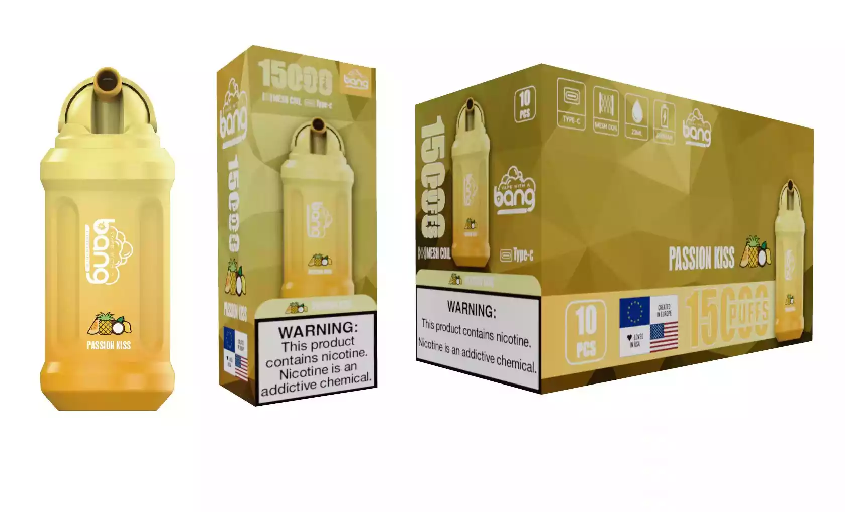 Das Bang 15000 Puffs Einweg-Vape ist mit einem 651mAh 16350 wiederaufladbaren Akku ausgestattet, der ca. 15.000 Züge ermöglicht. So profitieren Sie von einer langen Nutzungsdauer ohne Unterbrechungen. Dank der Type-C Schnellladefunktion ist der Akku rasch wieder einsatzbereit, sodass Sie ohne lange Wartezeiten dampfen können.