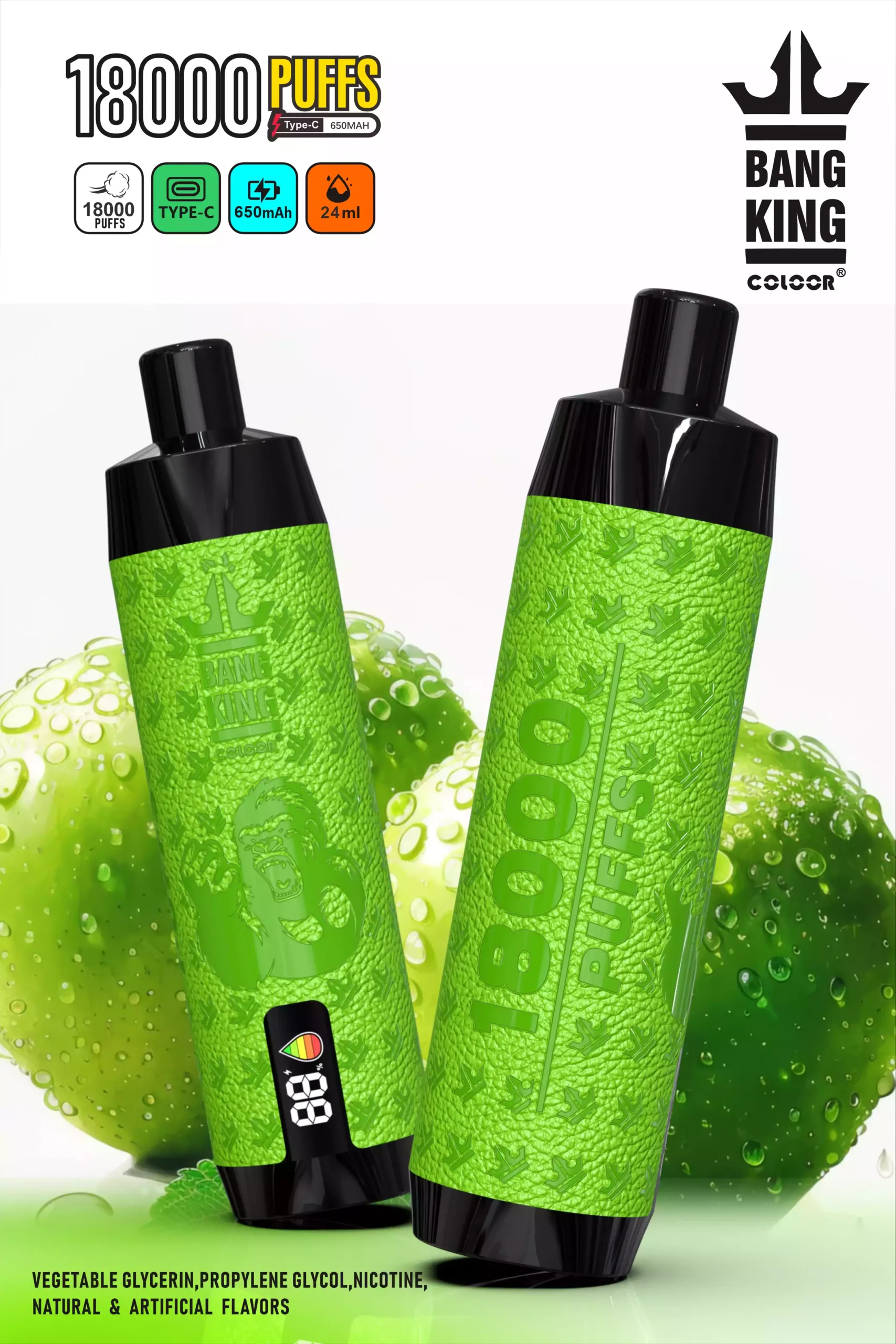 Der BANG 18000 Puffs DTL Screen überzeugt mit einer beeindruckenden Kapazität von 18000 Puffs und einem großzügigen 25ml E-Liquid Vorrat. Die eingebaute 650mAh Batterie sorgt für langanhaltenden Genuss, der durch den schnellen Type-C Ladeanschluss jederzeit einfach wieder aufgeladen werden kann. Dank verschiedener Nikotinstärken von 0%, 2%, 3% bis 5% bietet dieses Modell für jeden Dampfertyp die passende Option.