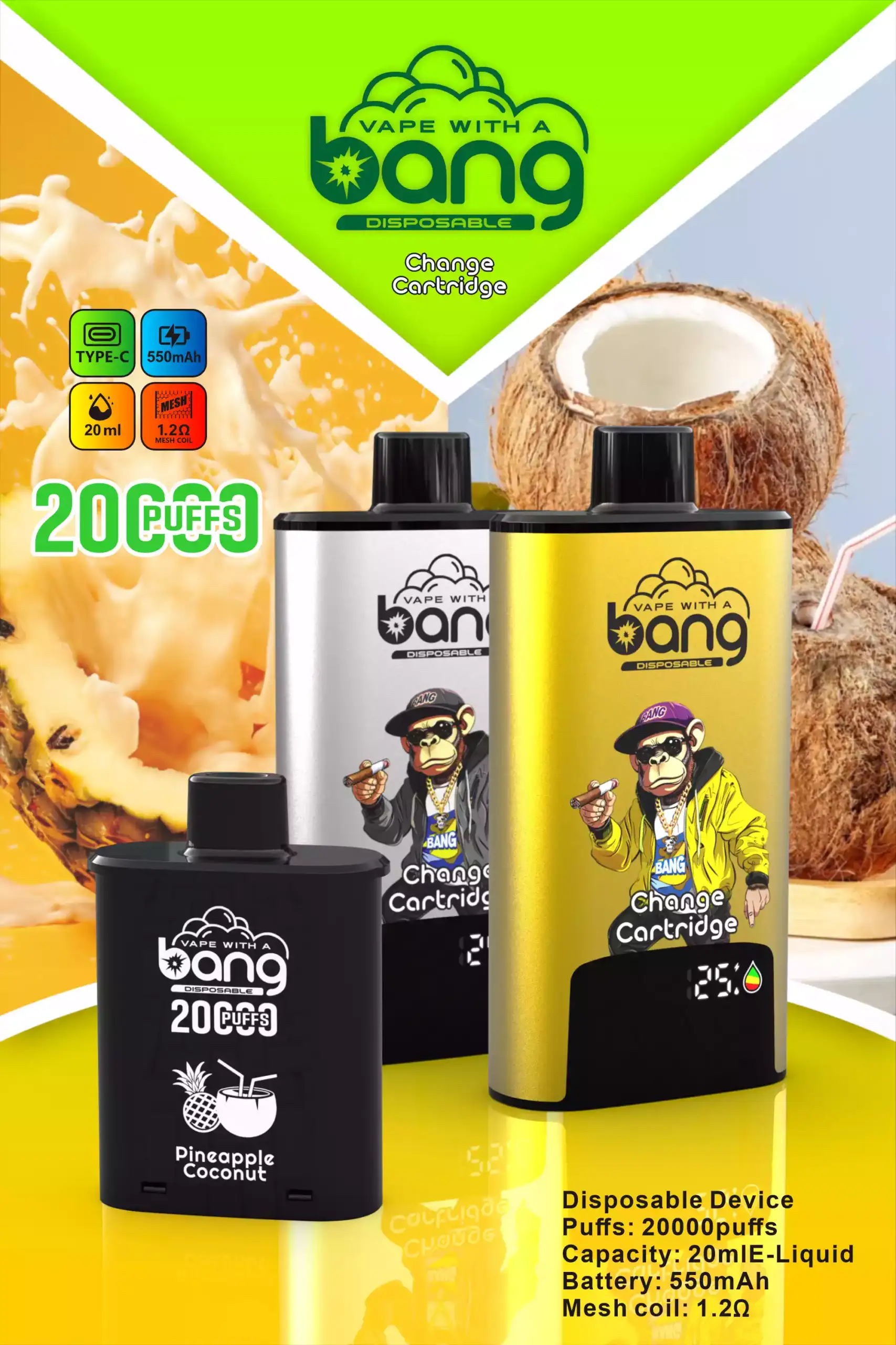 Entdecken Sie die BANG20000 DSK046 «B20HD», eine hochwertige Einweg-E-Zigarette für anspruchsvolle Dampfer. Mit 20.000 Zügen, einem 20-ml-E-Liquid-Tank und einem 550-mAh-Akku bietet dieses Modell ein langanhaltendes, komfortables und geschmackvolles Dampferlebnis. Ausgestattet mit einem 1,2-Ω-Mesh-Coil und einem Type-C-Ladeanschluss für schnelles Aufladen, kombiniert die B20HD Leistung, Sicherheit und Komfort. Das ergonomische Design und die vielfältigen Geschmacksrichtungen garantieren ein reichhaltiges, personalisiertes Dampferlebnis für jeden Dampfer.